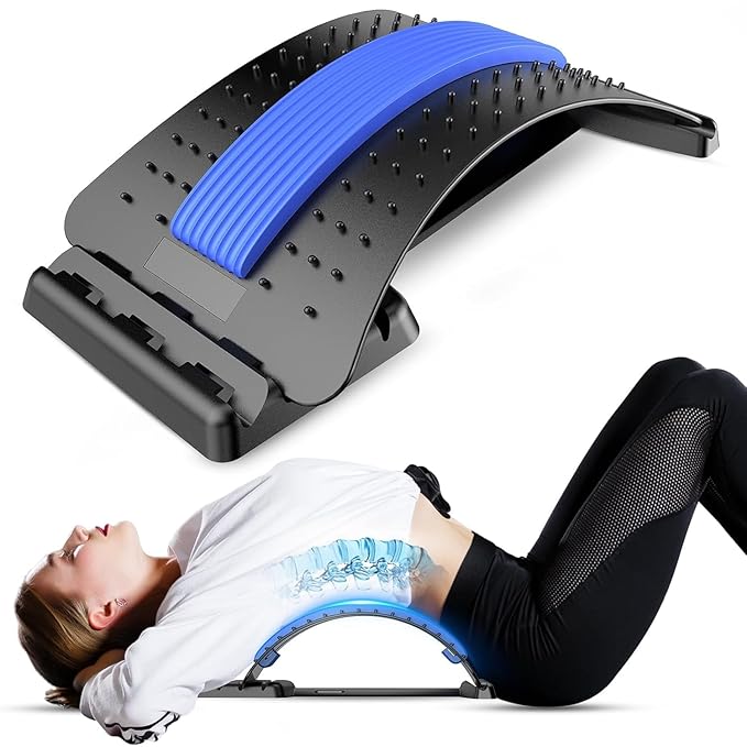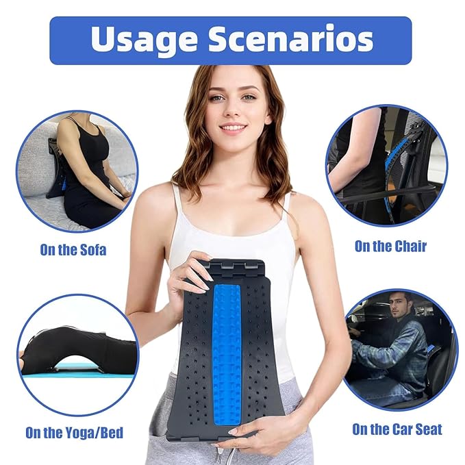 Multi-Level Back Support for Pain Relief/Lumbar Spine Support with Magnetic Acupressure Points/Adjustable Posture Corrector & Spinal Curve Relaxation Massager for Lower & Upper Back/Bed/Chair